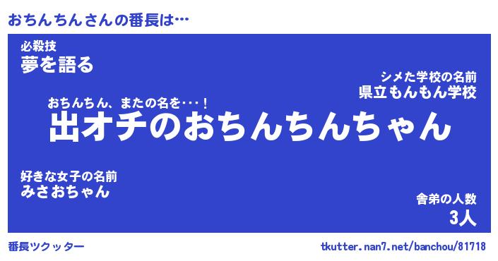 | 伝説のあだ名 | 『伝説のスナイパーおちんちん』 |