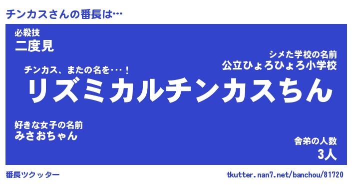 | ファンタジー風あだ名 | 『チンフェル』『エターナルチンカスー』 |