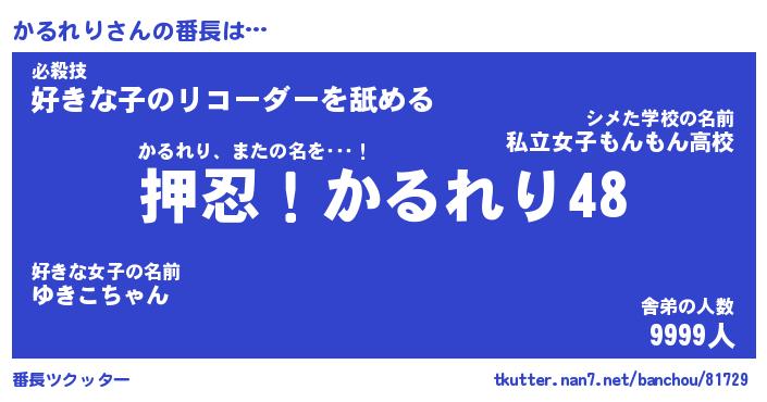 | 意味不明あだ名 | 『ペロリンかるれり』『永久保存かるれり』 |