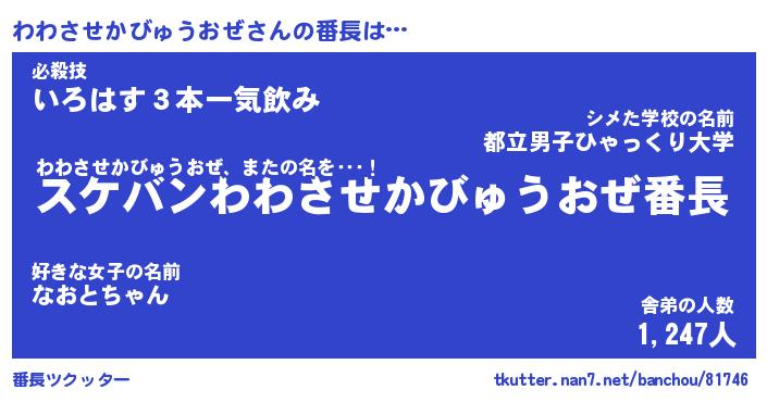 | 肩書あだ名 | 『わわさせかびゅうおぜCEO』 |