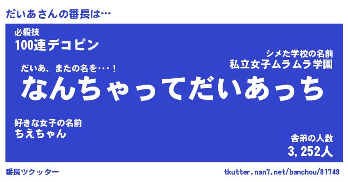 | ヒーロー風カッコイイあだ名 | 『スーパーダイア』『ウルトラだいあマン』 |