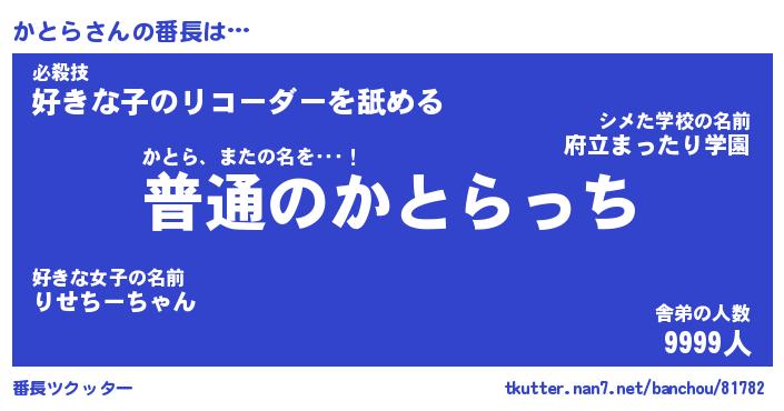 | 意味不明あだ名 | 『ペロリンかとら』『かとらフォーエバー』 |