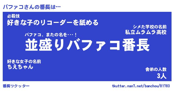 | ポケモン風あだ名 | 『バフチュウ』『バファダネ』 |