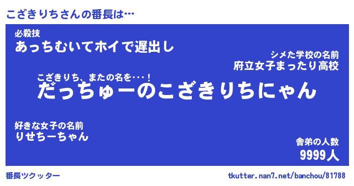 | ポケモン風あだ名 | 『コザチュウ』『コザキダネ』 |
