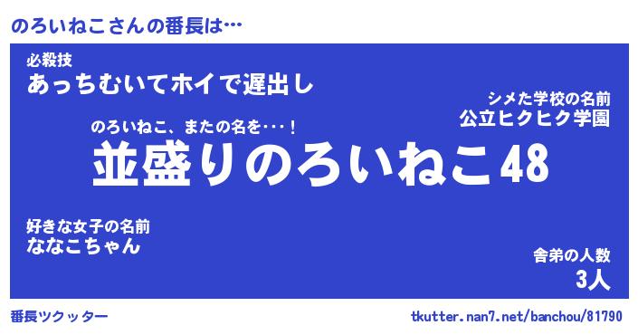 | ファンタジー風あだ名 | 『ノロフェル』『エターナルノロイネコー』 |