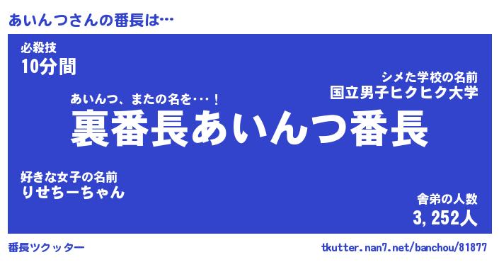 | 肩書あだ名 | 『あいんつCEO』『あいんつ総理大臣』 |