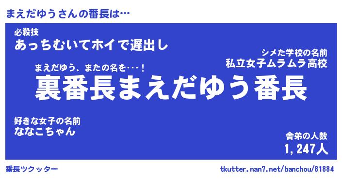 | ファンタジー風あだ名 | 『マエフェル』『エターナルマエダユウー』 |
