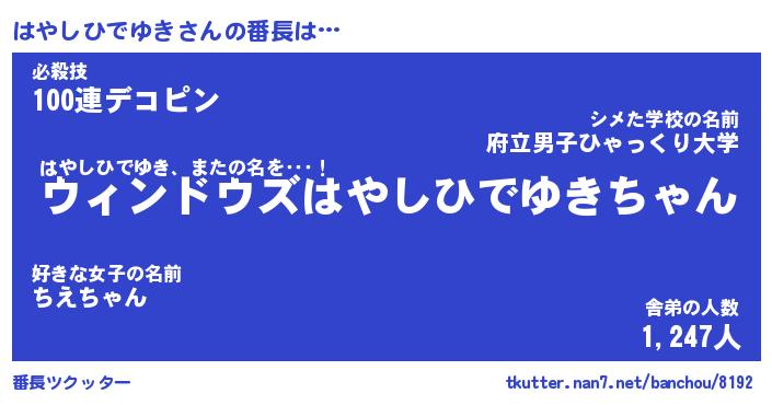 | 肩書あだ名 | 『はやしひでゆき御曹司』 |