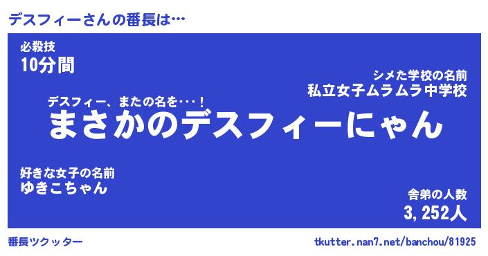 | ファンタジー風あだ名 | 『デスフェル』『エターナルデスフィーー』 |