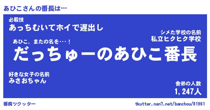 | ヒーロー風カッコイイあだ名 | 『スーパーアヒコ』『ウルトラあひこマン』 |