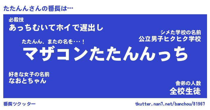 | ファンタジー風あだ名 | 『タタフェル』『エターナルタタンンー』 |