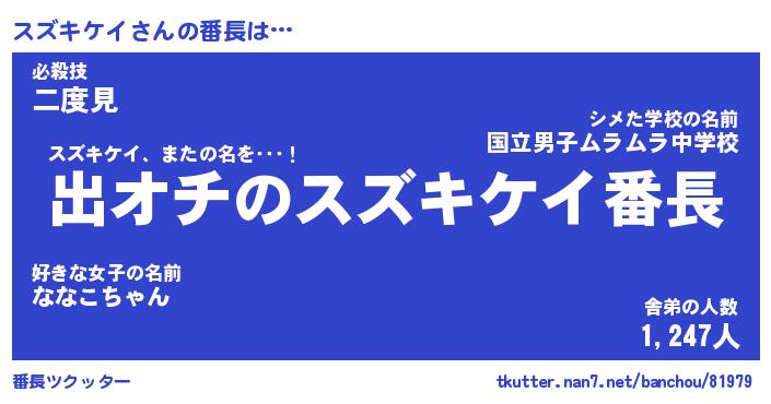 | ファンタジー風あだ名 | 『スズフェル』『エターナルスズキケイー』 |