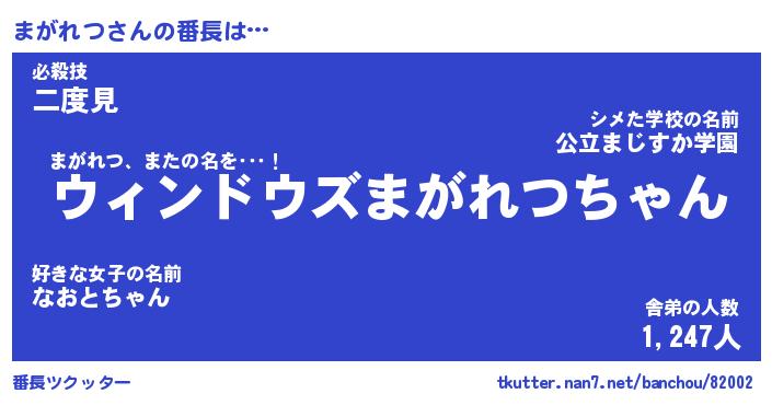 | ヘコむあだ名 | 『まがにゅー』『酢こんぶ』『まがを』 |