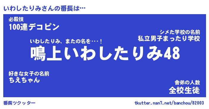 | 肩書あだ名 | 『いわしたりみ店長』『いわしたりみ班長』 |