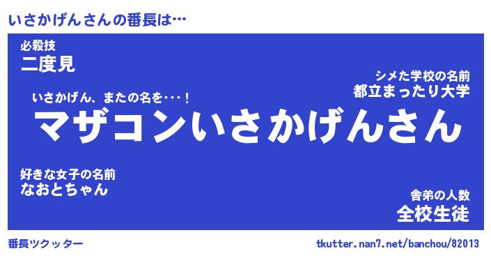 | ポケモン風あだ名 | 『イサチュウ』『イサカダネ』 |