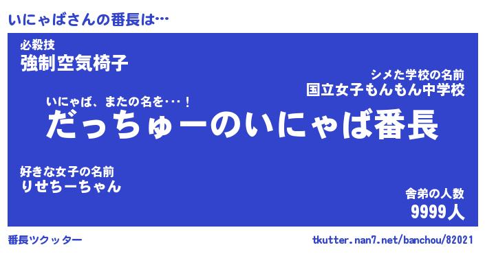 | 伝説のあだ名 | 『伝説のスナイパーいにゃば』 |
