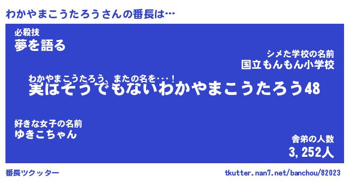 | 伝説のあだ名 | 『封印されしスナイパーわかやまこうたろう』 |