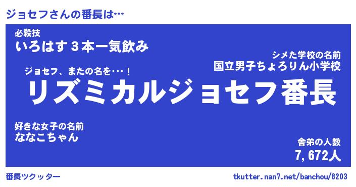 | 意味不明あだ名 | 『ペロリンジョセフ』『永久保存ジョセフ』 |
