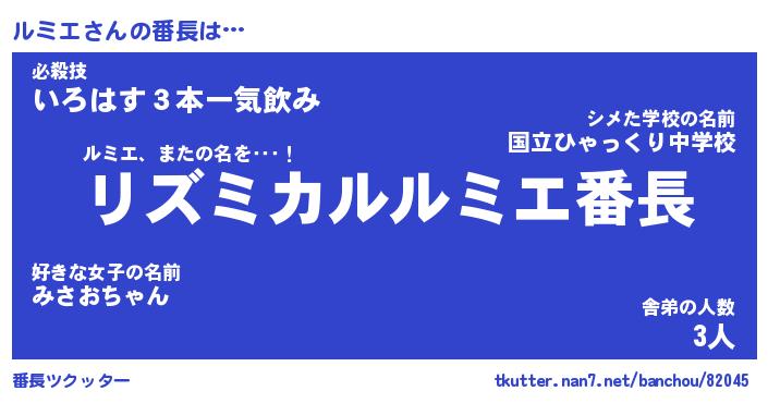 | ヘコむあだ名 | 『ルミふぇ~』『なまこ酢』『ルミを』 |