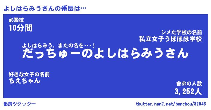 | ヒーロー風カッコイイあだ名 | 『スーパーヨシハラミウ』『幻影騎士ヨシ』 |