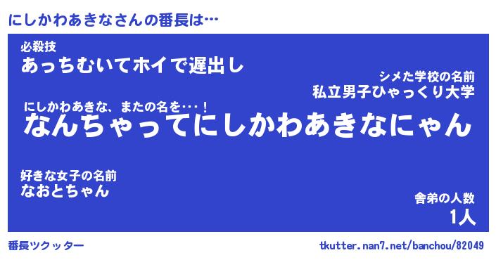 | 意味不明あだ名 | 『ペロリンにしかわあきな』 |