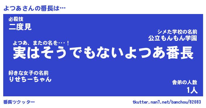 | 伝説のあだ名 | 『封印されしスナイパーよつあ』 |