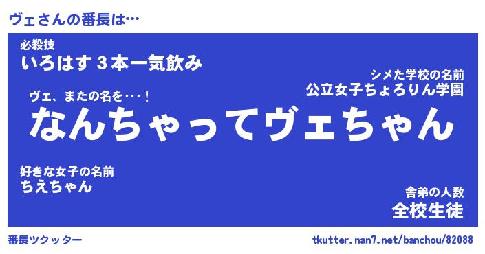 | ヘコむあだ名 | 『ヴェにゅー』『なまこ酢』 |