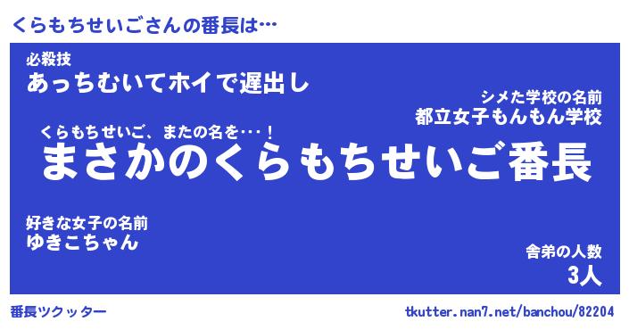 | 胡散臭い通販商品みたいなあだ名 | 『必ず成功する水晶球…その名も「くらもちせいご」』 |