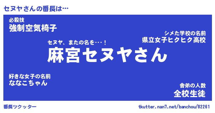 | ヒーロー風カッコイイあだ名 | 『スーパーセヌヤ』『ウルトラセヌヤマン』 |