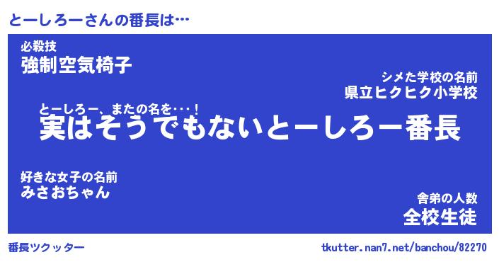 | ヒーロー風カッコイイあだ名 | 『スーパートーシロー』『暗黒騎士トー』 |