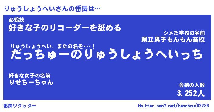| 男性向けラノベタイトル風あだ名 | 『りゅうしょうへいの憂鬱』 |