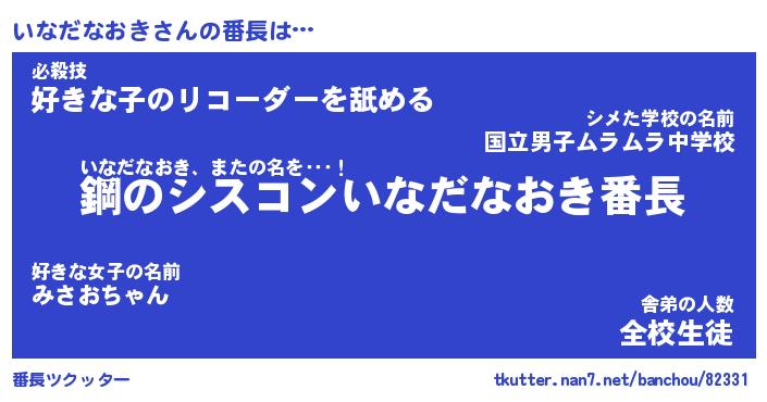 | 伝説のあだ名 | 『封印されしスナイパーいなだなおき』 |