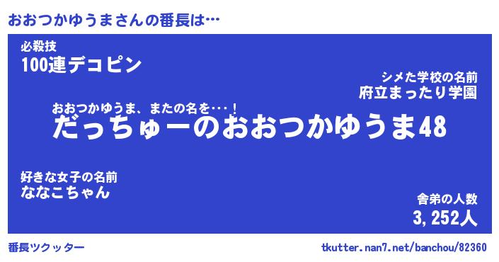 | 肩書あだ名 | 『おおつかゆうま御曹司』 |