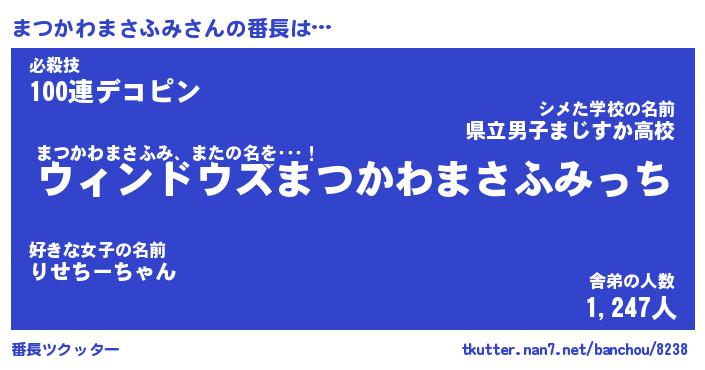 | 肩書あだ名 | 『まつかわまさふみ御曹司』 |