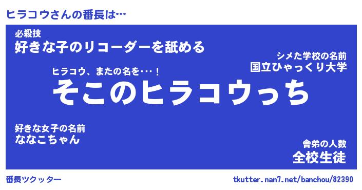 | 意味不明あだ名 | 『ペロリンヒラコウ』『永久保存ヒラコウ』 |