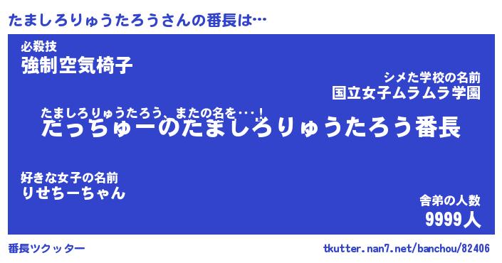 | 肩書あだ名 | 『たましろりゅうたろう御曹司』 |