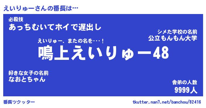 | 肩書あだ名 | 『えいりゅー店長』『えいりゅー国家主席』 |