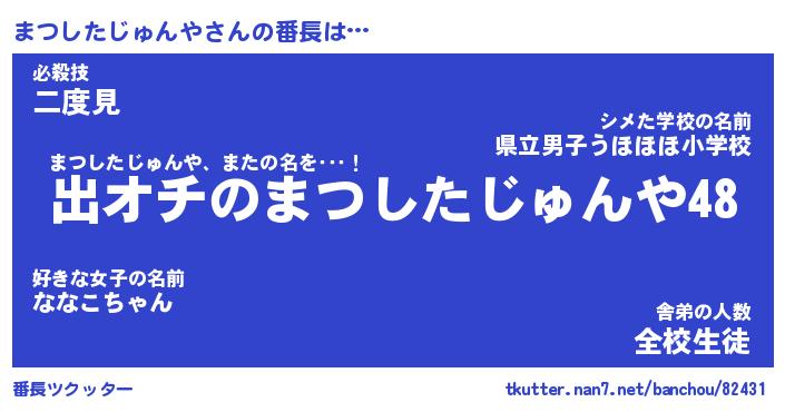 | 伝説のあだ名 | 『伝説のスナイパーまつしたじゅんや』 |
