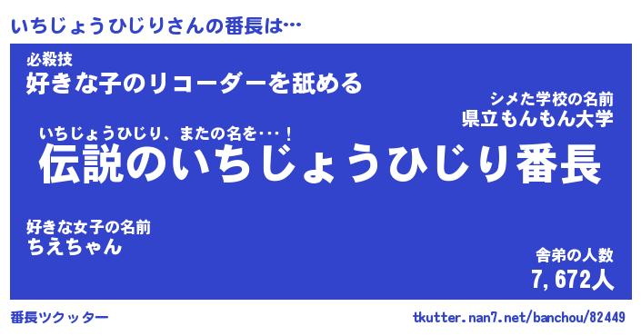| ピコ太郎風あだ名 | 『イコ五郎』『ピイ六郎』『イチ一郎』 |