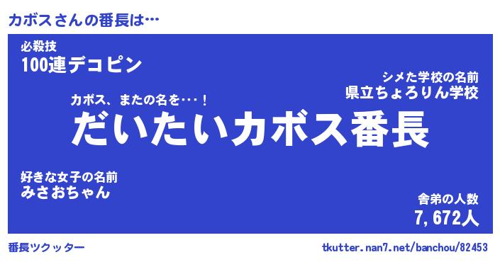 | ヒーロー風カッコイイあだ名 | 『スーパーカボス』『ウルトラカボスマン』 |
