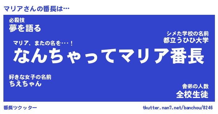 | ヒーロー風カッコイイあだ名 | 『スーパーマリア』『ウルトラマリアマン』 |