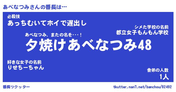 | ヒーロー風カッコイイあだ名 | 『スーパーアベナツミ』『天弓騎士アベ』 |