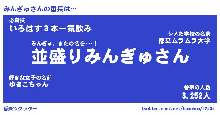 | 意味不明あだ名 | 『ペロリンみんぎゅ』『永久保存みんぎゅ』 |