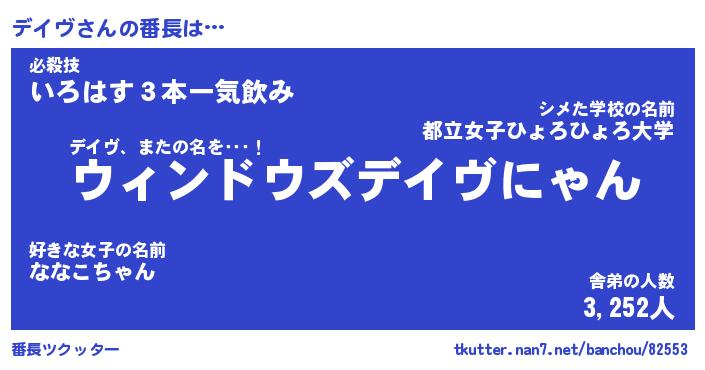| ヒーロー風カッコイイあだ名 | 『スーパーデイヴ』『ウルトラデイヴマン』 |