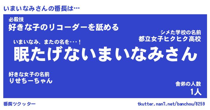 | 肩書あだ名 | 『いまいなみ店長』『いまいなみ国家主席』 |