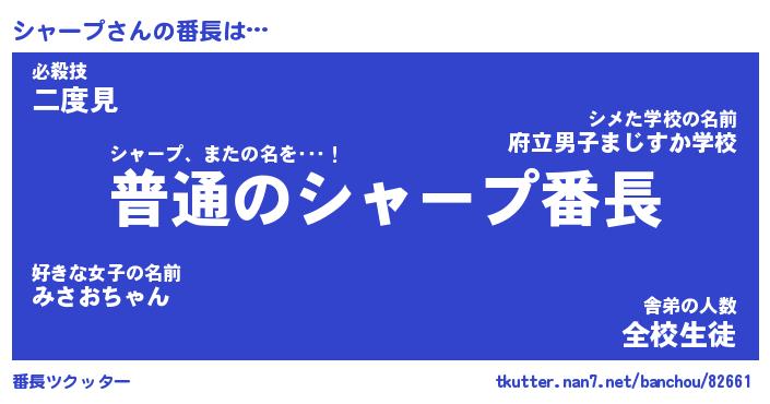 | 意味不明あだ名 | 『ペロリンシャープ』『永久保存シャープ』 |