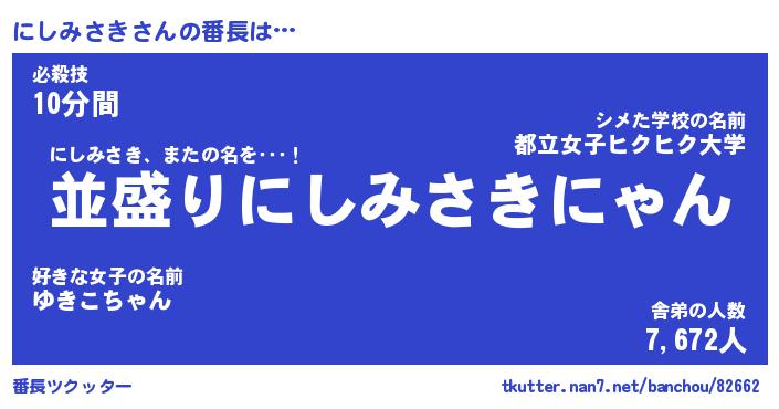 | ファンタジー風あだ名 | 『ニシフェル』『エターナルニシミサキー』 |