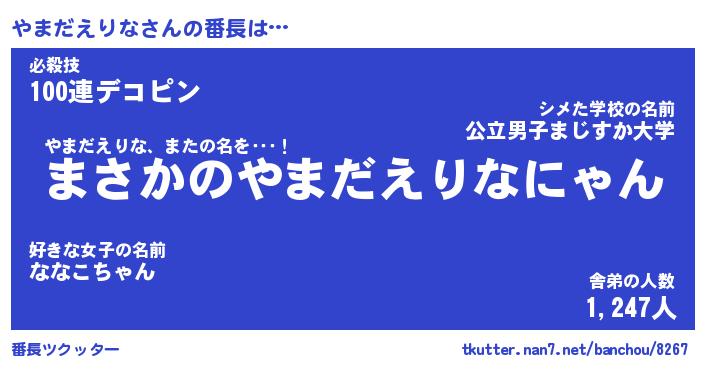 | 欧米人風あだ名 | 『マイケルやまだえりな』 |