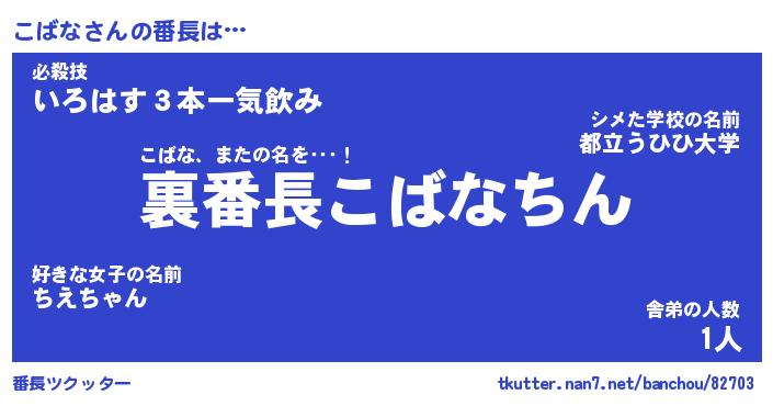 | ヒーロー風カッコイイあだ名 | 『スーパーコバナ』『ウルトラこばなマン』 |