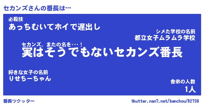 | 意味不明あだ名 | 『ペロリンセカンズ』『永久保存セカンズ』 |